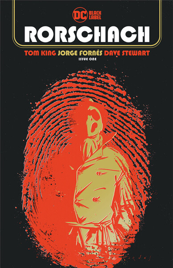 Rorschach #1, by Tom King, Jorge Fornés, Dave Stewart and Clayton Cowles, will publish on October 13, 2020, and carry DC’s Black Label descriptor, identifying the content as appropriate for readers ages 17+. The book will retail for $4.99 with card stock cover artwork by Fornés and a variant cover by Jae Lee. Rorschach character co-created by Dave Gibbons.