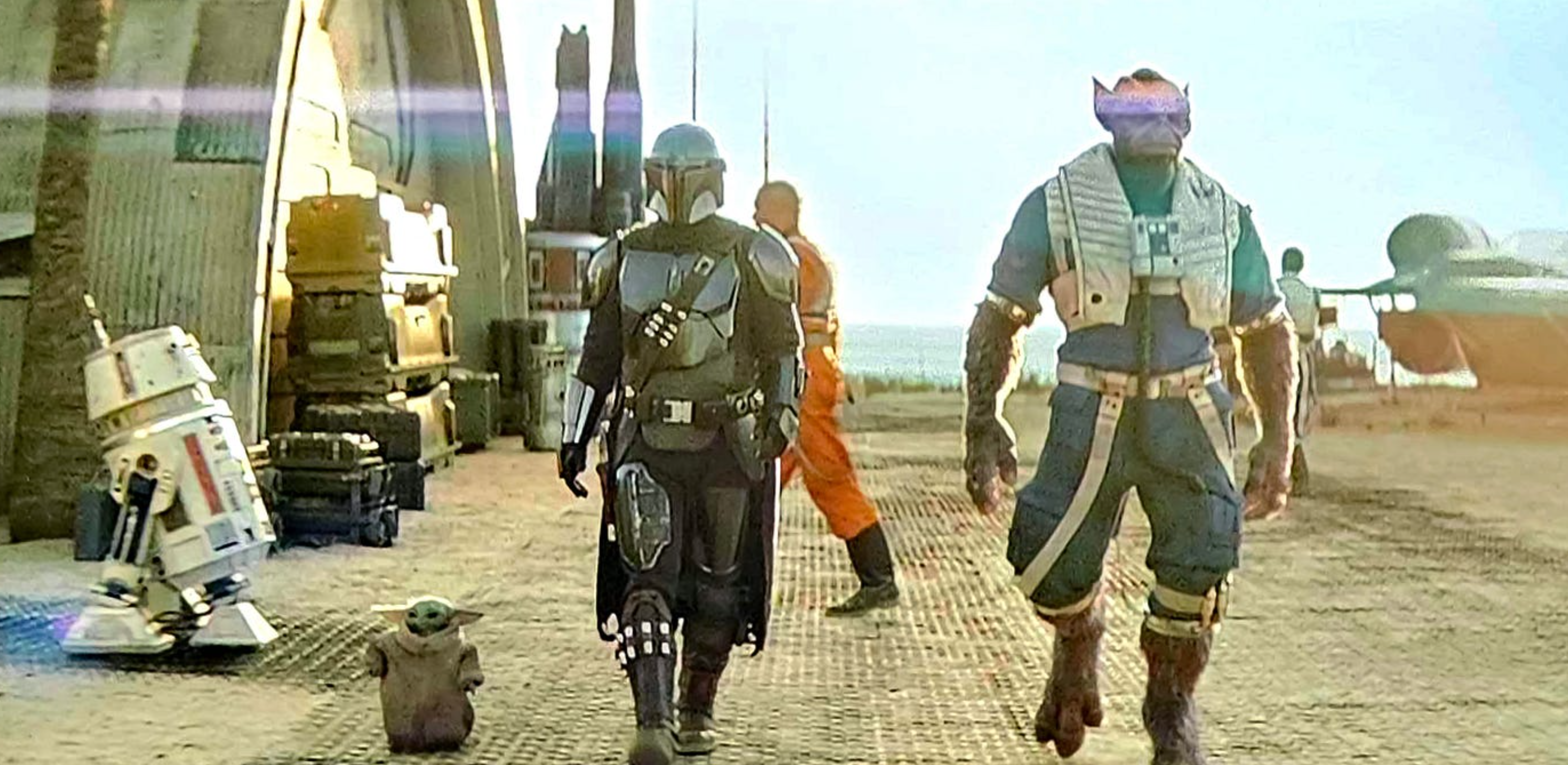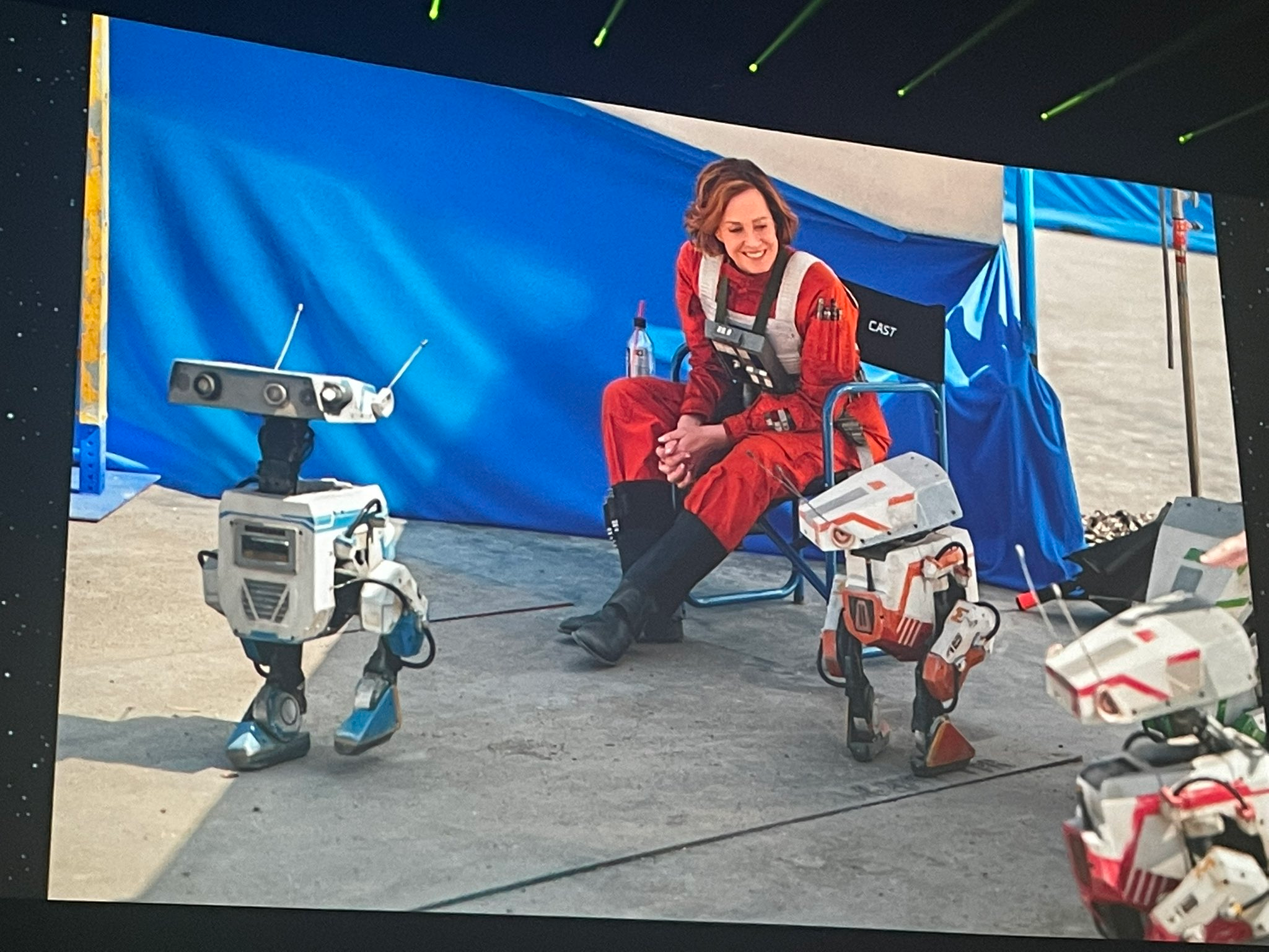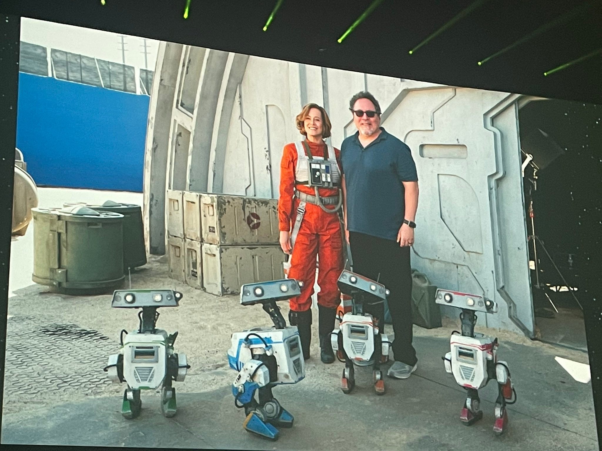 During the presentation we also saw new images of Weaver in her X-Wing pilot flight suit (and she looks amazing!) as well as Mando, played by Pedro Pascal once again, Grogu and a familiar red droid on the street with Garazeb “Zeb” Orrelios who was a character from Rebels who popped up in The Mandalorian season 3 and will now play a big role in this movie.