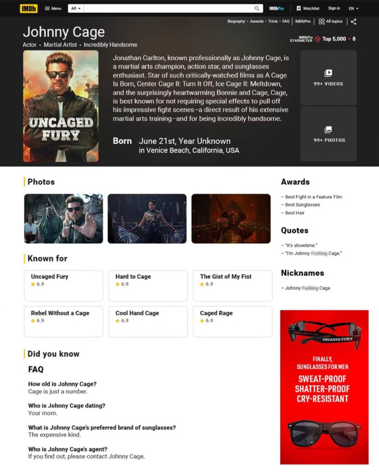 and Cage had his own IMDB page too which you can see here.