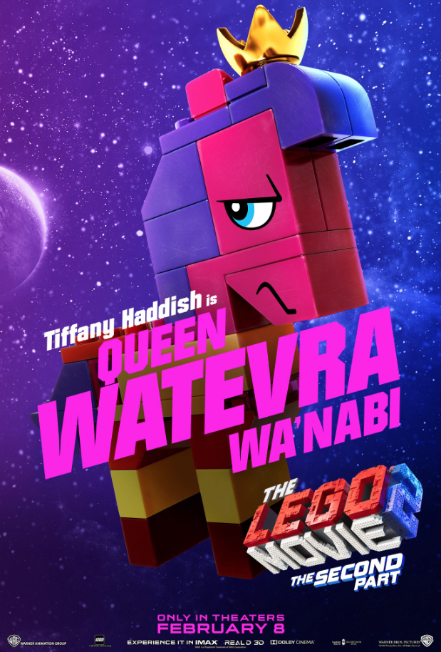 Reprising their starring roles from the first film are Chris Pratt as Emmet, Elizabeth Banks as Lucy (aka Wyldstyle), Will Arnett as LEGO BatmanTM, Nick Offerman as Metal Beard, and Alison Brie as Unikitty. They are joined by Tiffany Haddish, Stephanie Beatriz, and Arturo Castro as, respectively, new characters Queen Watevra Wa-Nabi, Sweet Mayhem and Ice Cream Cone.