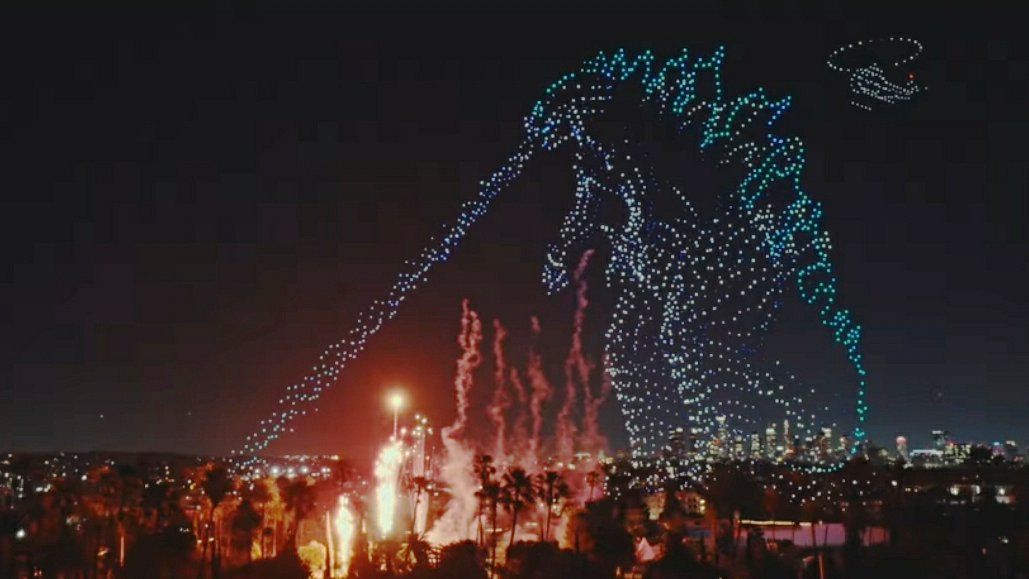 Drone shows often appear as a sky spectacle, this 12-minute production plays with the Hollywood landscape to situate Godzilla, Kong, and the newly introduced Titan X amidst the landscape to feel like they’ve truly taken over the city. The show also integrates pyrodrones in the air and on the ground, acting as visual effects for key moments like Godzilla blowing his atomic breath. The activation was created with creative agency, Heads in the Sky.